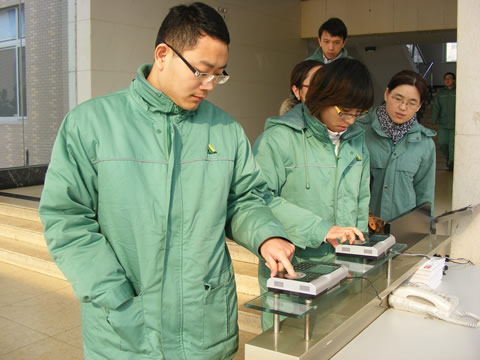 日前,公司新上的指紋識別系統(tǒng)正式投入運(yùn)行。該系統(tǒng)主要包括指紋機(jī)及附屬設(shè)備。指紋機(jī)以采集的指紋辨識人員身份,對辦公區(qū)的考勤統(tǒng)一管理,也進(jìn)一步規(guī)范了外來人員出入公司的秩序。(圖為員工打指紋下班)