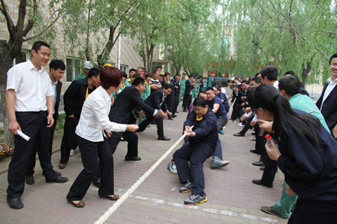 “加油,加油……”,吶喊聲、歡呼聲、掌聲此起彼伏,不絕于耳,飄蕩在辦公樓東林蔭路的上空。參賽隊(duì)員瞪圓了眼,握緊了繩,憋足了勁,身體同角度后仰,且腳頭頂腳跟,儼然一個(gè)整體,這是公司運(yùn)動(dòng)會(huì)拔河比賽的現(xiàn)場(chǎng)。經(jīng)過激烈角逐,一廠代表隊(duì)脫穎而出,榮獲五連冠。
