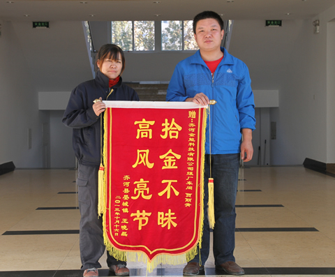 10月17日一大早,家住晏城鎮(zhèn)的村民王曉磊將一面繡有“拾金不昧,高風(fēng)亮節(jié)”的錦旗送至金能公司,感謝公司員工賈麗青的拾金不昧。