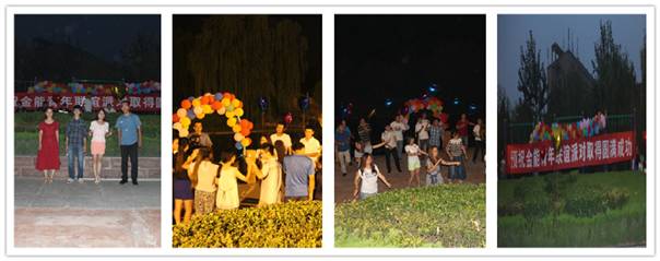 20日晚的公司倪倫河畔,河水在靜靜流淌,星光璀璨,月兒朦朧。環(huán)繞的親水平臺(tái),燈火通明,彩燈搖曳,五顏六色的氣球簇成的拱門格外漂亮,歡歌笑語(yǔ),熱鬧非凡,劃破了夜的寧?kù)o,洋溢著一派歡快的氣氛,公司的青年聯(lián)誼會(huì)在此舉行。