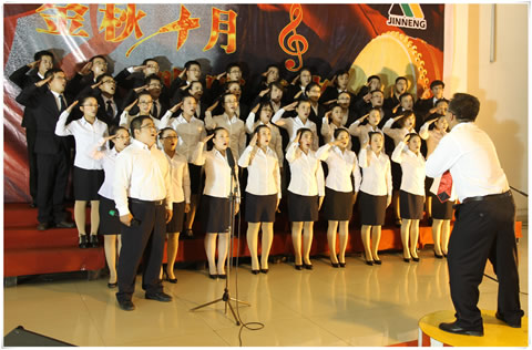 10月27日晚的大磊餐廳內(nèi),燈火通明,歌聲飛揚(yáng),叫好聲、加油聲、鼓掌聲此起彼伏,公司“金秋十月、唱響未來”合唱比賽正緊張進(jìn)行。