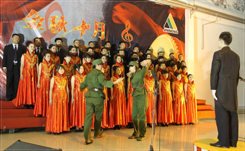 本次比賽是公司參賽人數(shù)最多,啦啦隊(duì)最龐大的一次,參賽人員近400人,啦啦隊(duì)也達(dá)400余人,場(chǎng)面頗為壯觀。為做好本次比賽,各隊(duì)“八仙過海,各顯神通”,充分的準(zhǔn)備,新穎的創(chuàng)意,讓比賽增色不少。其中,綜合組小朋友領(lǐng)唱的《歌唱祖國》,在《打靶歸來》的曲目中,身著綠軍裝、頭戴紅五角星軍帽,隨音樂翩翩起舞,成為比賽的一道最靚麗風(fēng)景線;四廠合唱《咱們工人有力量》時(shí),頭戴黃安全帽,圍著白毛巾,戴著白手套,整齊劃一,展示了當(dāng)代工人的良好精神風(fēng)貌,演唱《眾人劃槳開大船》時(shí),最初以大船的形狀呈現(xiàn),與歌曲內(nèi)容吻合;辦公組的真、假聲的科學(xué)運(yùn)用,受到了專業(yè)評(píng)委的贊揚(yáng)。經(jīng)過激烈角逐,辦公組拔得頭籌,綜合組屈居亞軍,四廠贏得比賽的第三名。