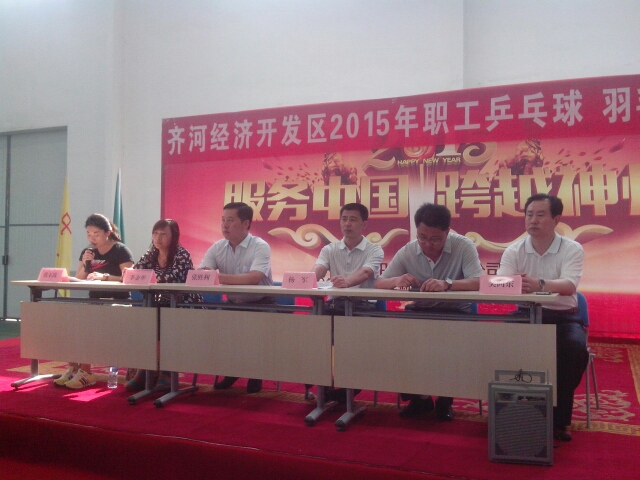 ??6月16日,齊河經(jīng)濟(jì)開發(fā)區(qū)2015年職工乒乓球、羽毛球比賽落下帷幕。經(jīng)過激烈角逐,公司員工趙麗麗、王光英分別奪得女子羽毛球單打的亞軍和季軍,公司獲得男子乒乓球團(tuán)體賽的第四名。(圖為比賽現(xiàn)場(chǎng))
